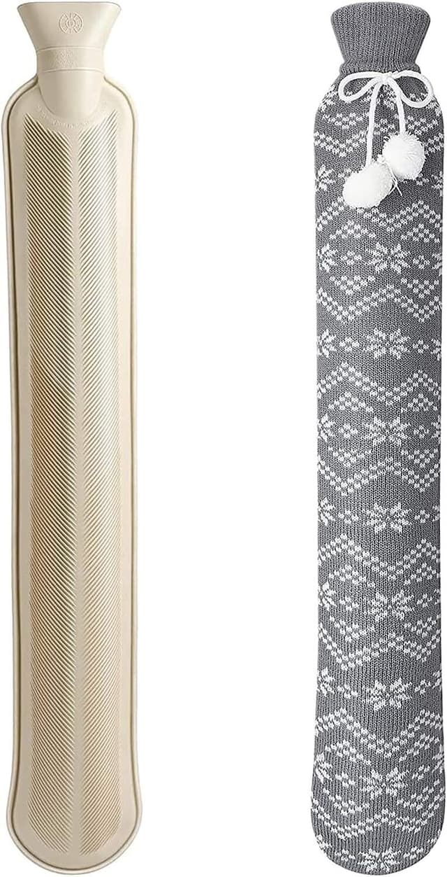 Suuri kapasiteetti: Pitkä vesipullo tarjoaa koko keholle pehmeää lämpöä. Pullon pitkä, sylinterimäinen muoto tarkoittaa, että se sopii täydellisesti suuremmille kehon alueille, jotta se lievittää stressiä ja jännitystä kehon osissa, joihin normaali kuumavesipullo ei yletä.