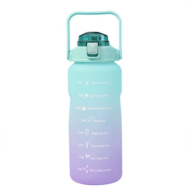 Tämä 2 litran vesipullo on inspiroivien sanojen ja aikamerkkien ansiosta täydellinen päivittäisen vedenkulutuksen seuraamiseen. Juomapullo muistuttaa sinua pysymään nesteytettynä ja juomaan tarpeeksi. Täydellinen niin töihin kuin vapaa-aikaan!