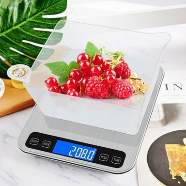 Erittäin tarkka mittaus: Koe vertaansa vailla oleva tarkkuus tällä digitaalisella keittiövaa'alla, jonka asteikko on 0,1 g tarkkoja mittauksia varten. Ihanteellinen leivontaan, kahvin valmistukseen ja annoskokojen hallintaan, tämä vaaka varmistaa tasaiset tulokset joka kerta. Sen erittäin tarkat anturit mittaavat ainesosat tarkasti, mikä tekee siitä välttämättömän työkalun sekä amatööri- että ammattikokeille. Saavuta täydelliset reseptit ja tasaiset makuprofiilit tällä olennaisella keittiövälineellä. Vaa'an tarkkuus ulottuu erilaisiin sovelluksiin, mausteiden mittaamisesta jalometallien punnitsemiseen, tarjoten monipuolisuutta keittiön ulkopuolella.