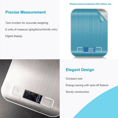 SUUNNITTELU: Tämä tarkka keittiövaaka on suunniteltu kevyeksi ja kompaktiksi, joten se on erittäin helppo säilyttää. Muotoilu on yksinkertainen ja moderni ja sopii jokaiseen keittiöön ja jokaiseen makuun!