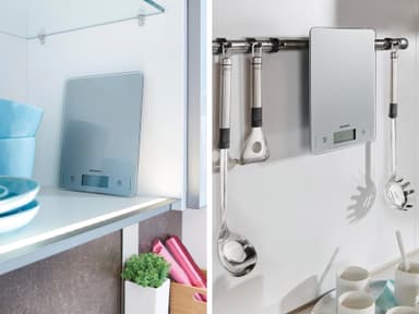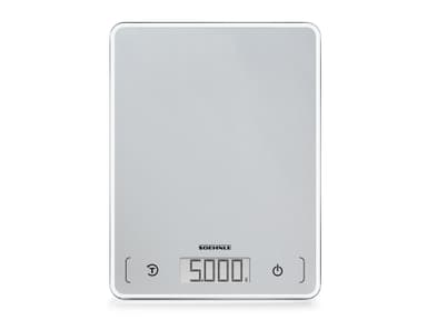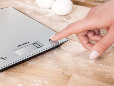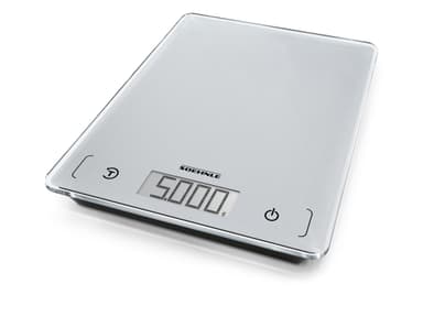 Køkkenvægt i kompakt og ekstra tyndt design, 21 x 16 x 1,8 cm. Vejer op til 5 kg med interval på 1 g, hvilket gør den ideel til fx krydderier. Letlæseligt display, tarafunktion og energisparende autosluk-funktion. Enhederne vises i g/kg eller oz/lb.