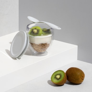 Aina liikkeellä? Pysy nesteytettynä ja ravittuina missä tahansa liikutkin kannella varustettujen PAVINA to-go -kuppien avulla. Tämä uudelleenkäytettävä matkakuppi on ihanteellinen vasta valmistetun smoothien, jogurtin, granolan, hedelmien tai kuuman tai kylmän juoman kuljettamiseen, olitpa sitten toimistossa, koulussa, matkoilla, tai vain nauttimassa rentouttavasta iltapäivästä puistossa.