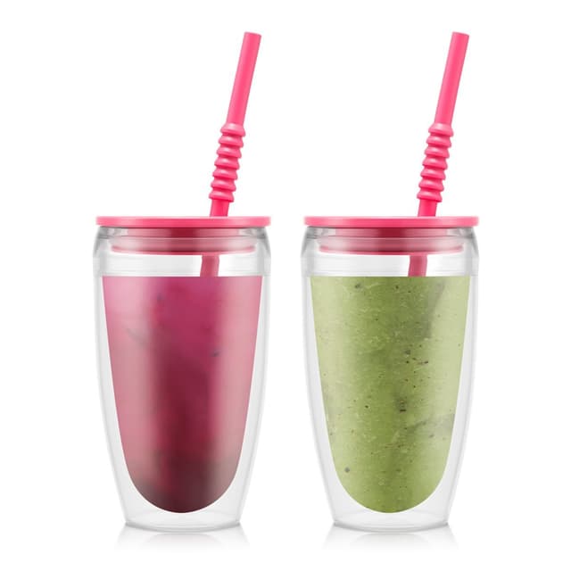 Tämä innovatiivinen välipalamuki tarjoaa lasin kauneuden ja kirkkauden ilman sen haurautta. Ne on valmistettu kestävästä, BPA-vapaasta muovista, joten ne ovat ja turvallisia käyttää koko perheelle. Niiden kaksoisseinärakenne pitää kuumat ja kylmät ruoat ja juomat optimaalisessa lämpötilassa pidempään, ja kansi varmistaa sisällön pysymisen turvassa liikkuessa - varmista itse vain, että ne pysyvät pystyssä turvallisuuden vuoksi.