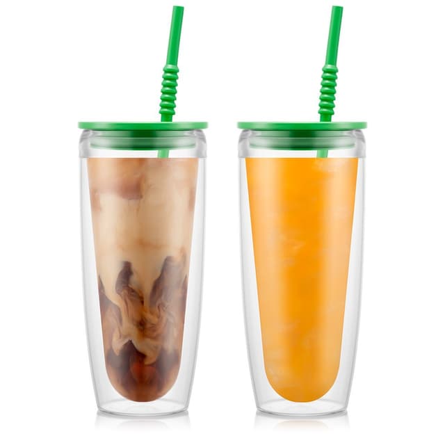 Tämä innovatiivinen välipalamuki tarjoaa lasin kauneuden ja kirkkauden ilman sen haurautta. Ne on valmistettu kestävästä, BPA-vapaasta muovista, joten ne ovat ja turvallisia käyttää koko perheelle. Niiden kaksoisseinärakenne pitää kuumat ja kylmät ruoat ja juomat optimaalisessa lämpötilassa pidempään, ja kansi varmistaa sisällön pysymisen turvassa liikkuessa - varmista itse vain, että ne pysyvät pystyssä turvallisuuden vuoksi.