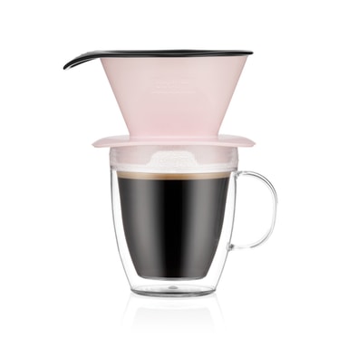 Kahviekspertit arvostavat käsinsuodatettua kahvia vahvan aromin sekä pehmeän ja täyteläisen maun vuoksi. Mutta joskus sitä kaipaa vain yhtä kahvikupillista, eikä ole tarvetta valmistaa täyttä pannullista. Sellaisina hetkinä ota esiin Bodumin POUR OVER -suodatinsuppilo ja kaksiseinäinen muki.