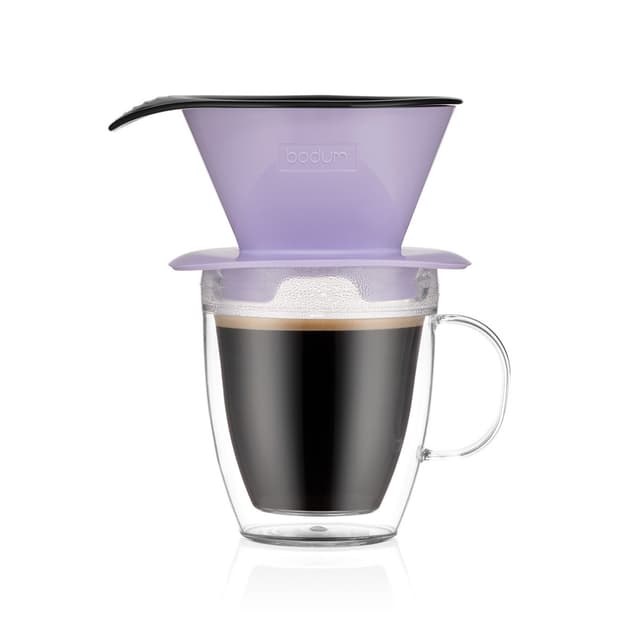 Kahviekspertit arvostavat käsinsuodatettua kahvia vahvan aromin sekä pehmeän ja täyteläisen maun vuoksi. Mutta joskus sitä kaipaa vain yhtä kahvikupillista, eikä ole tarvetta valmistaa täyttä pannullista. Sellaisina hetkinä ota esiin Bodumin POUR OVER -suodatinsuppilo ja kaksiseinäinen muki.