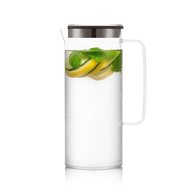 Tässä tyylikkäässä ja käytännöllisessä kannussa on kristallinkirkas muovirunko, joka on täydellinen valinta erikoisteen, hedelmämehujen, tuorepuristetun mehun, boolin ja monen muun suositun janonsammuttajan kauniin värin esittelyyn. (Kannun läpi heijastuvien valonsäteiden katseleminen on lumoavaa.) Asiantuntijoiden suunnittelema kaatonokka ja mukava kahva tekevät juomien kaatamisesta helppoa, ja kätevä kansi suojaa roiskeilta ja läikkymiseltä.
