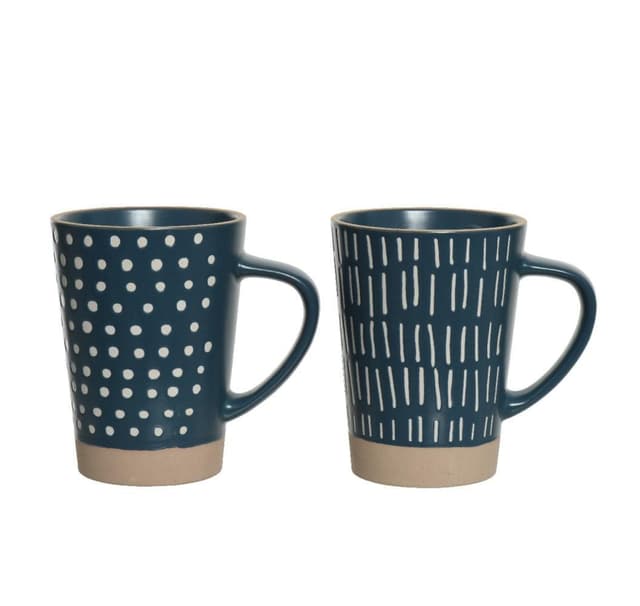 Muki PIIA H11cm, sininen. Kivitavara, matta lasite, painatuskuvio. Voidaan pestä astianpesukoneessa ja käyttää mikroaaltouunissa. Tuotteen mitat ovat 12x8,6xH11,4cm.