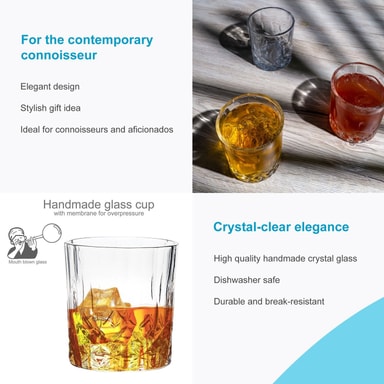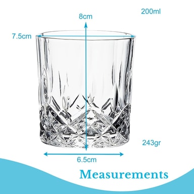 Intirilife viskilasi kristallilasista, täyttökapasiteetti 200ml. Koe unohtumattomia hetkiä suosikkiviskisi ja tyylikkään kristallilasimme parissa. Ylellisen ja ajattoman muotoilun kristallilasi viimeistelee täydellisen iltasi ja voit nauttia suosikkiviskistäsi tai -juomastasi. Lasi on konepesun kestävä ja kestävä. Tyylikäs lasi on myös täydellinen lahja erityisiin juhliin. Saat 6 kpl paketin.