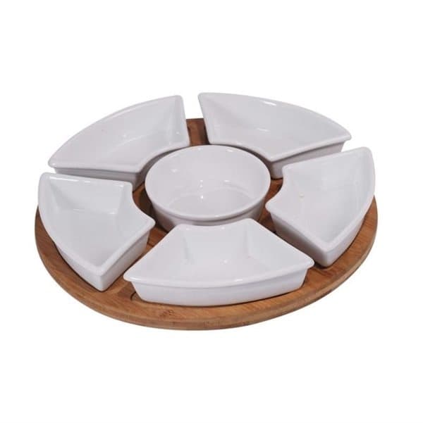 Bambu on luonnonystävällisin puulaji käyttää ja sen on myös erittäin kestävää. Tässä bambua on käytetty luomaan täydellisen tarjoittimen 7:lle hyvännäköiselle kulholle!