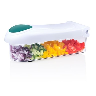 Tämä Alpinan kätevä vihannesleikkuri on täydellinen keittiötyökalu niille, jotka haluavat tehostaa ruoanlaittoa. Sen 6 vaihdettavan terän avulla voit helposti vaihdella leikkaustyyliä sen mukaan, haluatko ohuita viipaleita, kuutioita vai julienne-suikaleita. Lisäksi leikkuri on varustettu turvasalvalla ja läpinäkyvällä keräysalustalla, joka helpottaa ainesosien käsittelyä.