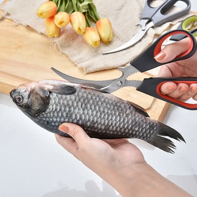 Ruostumattomasta teräksestä valmistetut kalasakset on suunniteltu helpottamaan merenelävien valmistusta. Ainutlaatuinen kaareva terä mahdollistaa kalan mahalaukun helpon avaamisen ja kuorien poistamisen. Ergonominen kahva, joka on valmistettu ruos...Tutustu ominaisuuksiin