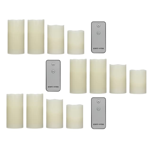 Tekniset tiedot: 3 x pieni kynttilä (DxH): n. 7.5 x 10cm. 3 x keskikokoinen kynttilä (DxH): n. 7,5 x 12,5cm. 6 x suuri kynttilä (SxK): n. 7.5 x 15cm. Tarvittavat paristot kynttilää kohden: 3x AAA 1,5 voltin paristot. Nämä EIVÄT sisälly toimitukseen! Paino: Kaikki kynttilät yhdessä n. 800g. Väri: kermanvalkoinen Materiaali: Kermanvärinen kynttilänkuori aidosta vahasta valmistettu kynttilä Muovista ja metallista valmistetut komponentit