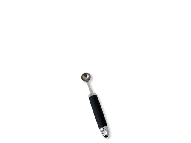 The melon baller is made of steel. The melon baller has a nice soft touch handle that is comfortable to work with and gives a good grip. For a longer product life, hand washing is recommended.Tutustu ominaisuuksiin