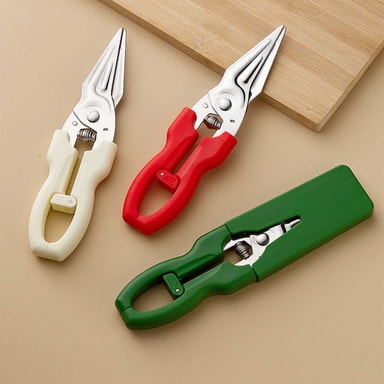 Monitoimityökalu: Nämä siipikarjasakset eivät ole vain kanoja varten! Ne ovat monipuolinen keittiötyökalu, jolla voidaan hoitaa erilaisia tehtäviä yrttien ja vihannesten leikkaamisesta rasvan leikkaamiseen lihasta. Terävät ruostumattomasta teräksestä valmistetut terät leikkaavat vaivattomasti erilaisia ruokia, mikä tekee niistä välttämättömän työkalun jokaiselle kotikokille. Ne ovat myös hyödyllisiä pakkausten avaamiseen ja muiden keittiötöiden suorittamiseen. Ergonominen muotoilu tarjoaa mukavan otteen, mikä vähentää käsien väsymistä pitkäaikaisen käytön aikana. Tämä takaa tehokkaan ja tarkan leikkaamisen joka kerta. Sakset ovat ihanteelliset monenlaisiin keittiötehtäviin, mikä tekee niistä korvaamattoman apuvälineen jokapäiväisessä ruoanlaitossa.