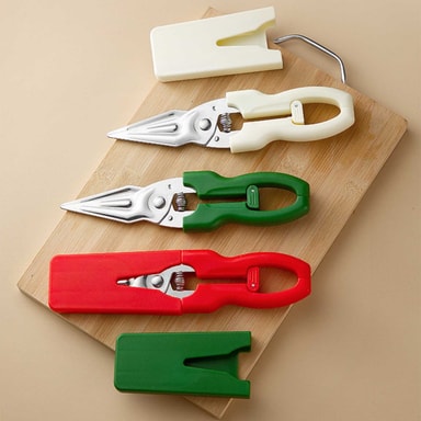 • Ruostumattomasta teräksestä valmistetut siipikarjasakset magneettisella tupella - Monikäyttöiset keittiösakset Punainen