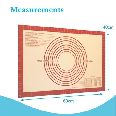 Intirilife uudelleenkäytettävä silikoni-leivinmatto Helpota taikinan keittämistä, leivontaa tai kaulimista ei-taikinan avulla. - tikkumatto. Se tukee tasaista lämmön jakautumista parempien tulosten saavuttamiseksi. Samaan aikaan pinnoitteen ansiosta öljyä tai voita ei tarvita. Maton pinnalla on kokotiedot pituudesta ja halkaisijasta, mikä säästää mittausvaivaa taikinaa kaulittaessa. Leivinmatto on pestävä ja siksi uudelleenkäytettävä ja se soveltuu lämpötiloihin -40 - 260 °C. Leivinmatto on ympäristöystävällinen, koska sen ansiosta ei tarvitse käyttää leivinpaperia. Sen käyttäminen leikkuulautana ei kuitenkaan ole suositeltavaa. 40x60 cm materiaali koostuu lasikuituverkosta, jossa on elintarviketurvallinen silikonipinnoite.