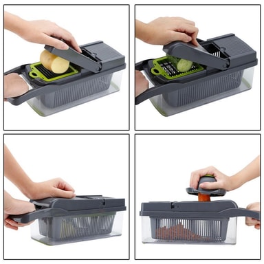 Tällä vihannesleikkurilla eri hedelmät ja vihannekset voidaan pilkkoa tasaisesti muutamassa minuutissa. Salaatit, sipulit voidaan leikata, perunat raastaa ja paljon muuta voidaan valmistaa muutamassa yksinkertaisessa vaiheessa.