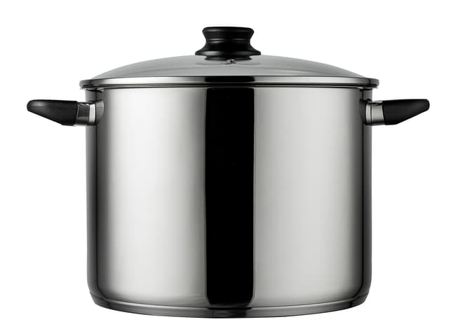 Stockpot with lid and basket 15 litres18/8 steel.Glass lid with steam vent.Bakelite grip.Internal measurement scale.All heat sources including induction.Tutustu ominaisuuksiin