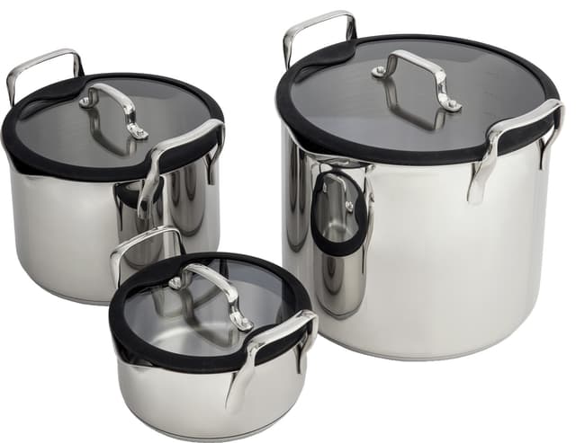 Ego Stackpot -kattilapakkaus sisältää 1, 4 ja 8 litran kattilat kaatonokalla ja lasikannella. Ruostumattomasta teräksestä valmistetut kattilat sopivat induktioliesille. Silikoniset kannen reunat. Pinottava muoto säästää tilaa.Tutustu ominaisuuksiin