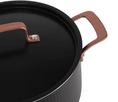 Pepper – Pata kannella 24 cm / 5,65 litraa – MustaTäydellinen keskikokoinen pata, joka sopii erinomaisesti suurempiin annoksiin keittoja ja pataruokia, hauduttamiseen tai pastan, riisin ja perunoiden keittämiseen perheillallisia varten.Elegantti satiTutustu ominaisuuksiin