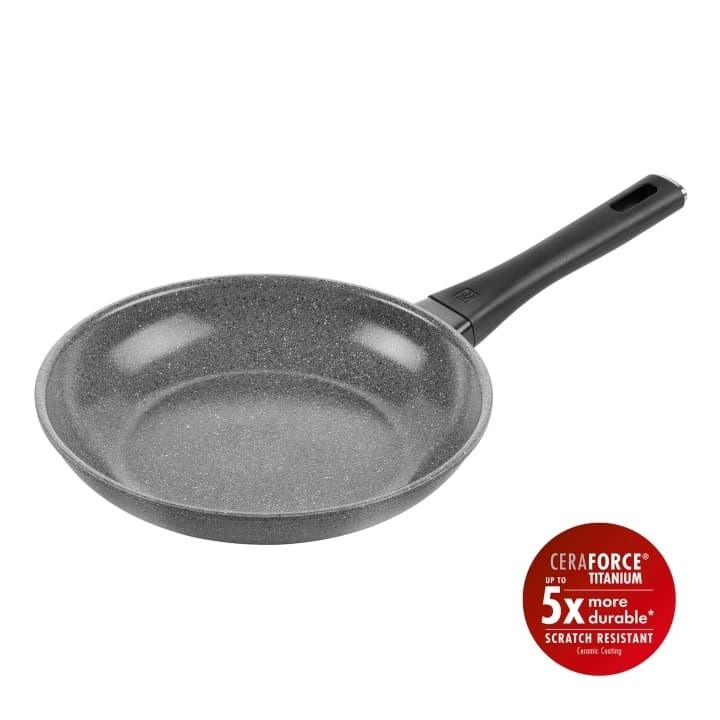 Tervetuloa kulinaarisen huippuosaamisen maailmaan Zwilling Terreno Plus Ceramic Fry Pan -paistinpannulla. Tämä 24 cm:n ihme on uusi keittiön liittolaisesi, joka on suunniteltu hoitamaan vaativimmatkin ruoanlaittotehtävät helposti ja tyylillä. Olitpa kokenut kokki tai kotikokki, tämä pannu lupaa nostaa ruoanlaittokokemuksesi korkealle.Verraton kestävyys ja suorituskyky