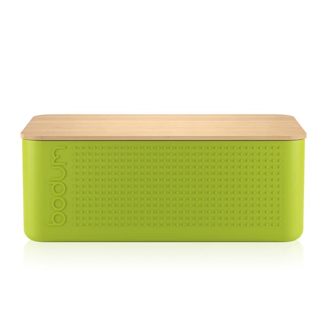 Tämä suuri leipälaatikko tarjoaa näyttävää säilytystilaa keittiötasollesi. Se on tehty värikkäästä BPA-vapaasta muovista, ja siinä on mukana bambukansi joka toimii myös leikkuulautana sekä tarjottimena leivällesi, murut talteen keräävien urien kera.