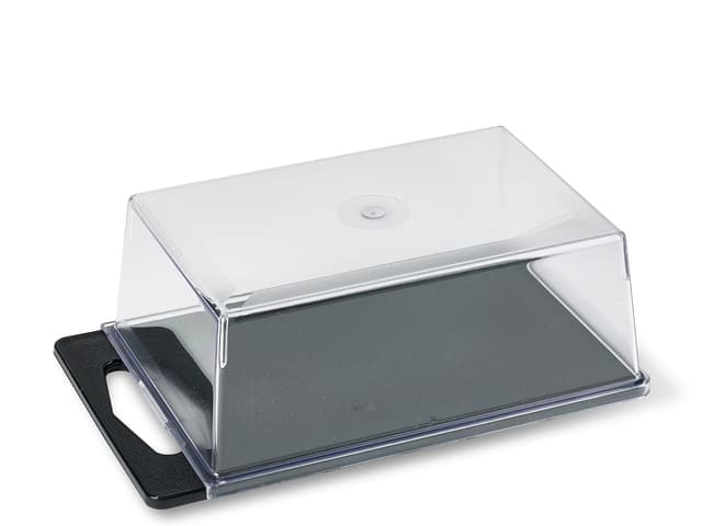 Cheese box with black chopping board. The lid is made of transparent plastic, and the cutting board is black plastic. Measures 25 x 15 x 8 cm.Tutustu ominaisuuksiin
