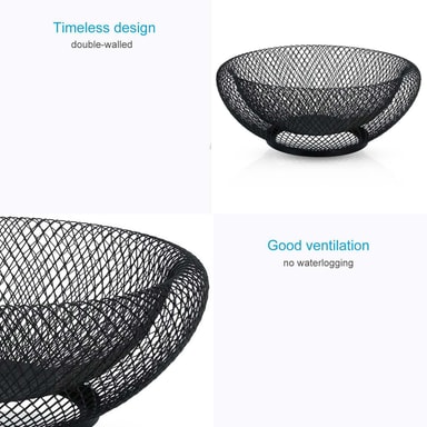 Kaunis kaksiseinäinen hedelmäkulho on valmistettu metallista. Rakenne mahdollistaa tasaisen ilmanvaihdon ja estää veden tukkeutumisen, joten hedelmäsi pysyvät tuoreina.