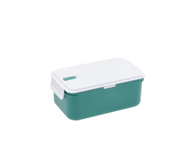 Stylish PP plastic lunchbox with removable divider and cooling element to keep food fresh. The lid has a silicone valve and seals shut with clips at both ends. The cooling element is easy to remove and freeze for at least 8 hours before use.
