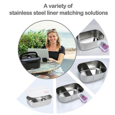 Vuotamaton ja kannettava muotoilu: Lounasrasia on suunniteltu kätevästi mukaan otettavaksi. Siinä on tukeva, vuotamaton kansi, joka estää roiskeet ja sotkut. Kompakti koko ja mukana tuleva Oxford-kangaspussi tekevät siitä helpon kuljettaa töihin, kouluun tai piknikille.