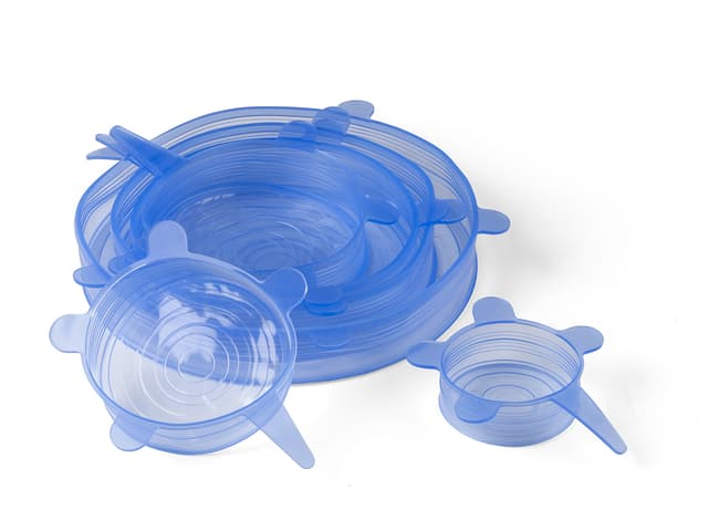 Flexible silicone lid keeps your bowls and storage containers completely airtight. They can be stretched to double size and used over and over again, saving on plastic wrap and sparing the environment. The lids are dishwasher-safe.