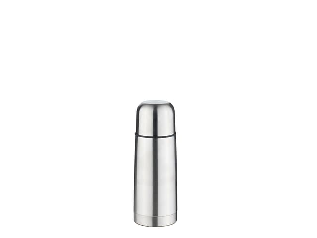 Thermos flask 0.35 l in matt steel.Practical stopper with push-button for easy and simple use.Preheat with warm tap water before filling the flask with hot coffee or tea.Tutustu ominaisuuksiin