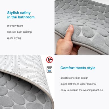 Puhdistus on vaivatonta ja myös kuivaus nopeaa. Matto sopii erinomaisesti pesuhuoneeseen ja kylpyhuoneeseen, niin suihkun, pesualtaan tai wc:n eteen.Materiaali on valmistettu polyesterista ja memory foamista, joten se mukautuu yksilöllisesti jalkojesi mukaan.