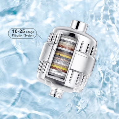 Edistynyt suodatus: Tämä suihkusuodatin käyttää 10-25-kerroksista suodatusjärjestelmää vähentämään tehokkaasti klooria, raskasmetalleja ja muita epäpuhtauksia suihkuvedestäsi, jolloin saat puhtaamman ja terveellisemmän suihkukokemuksen.