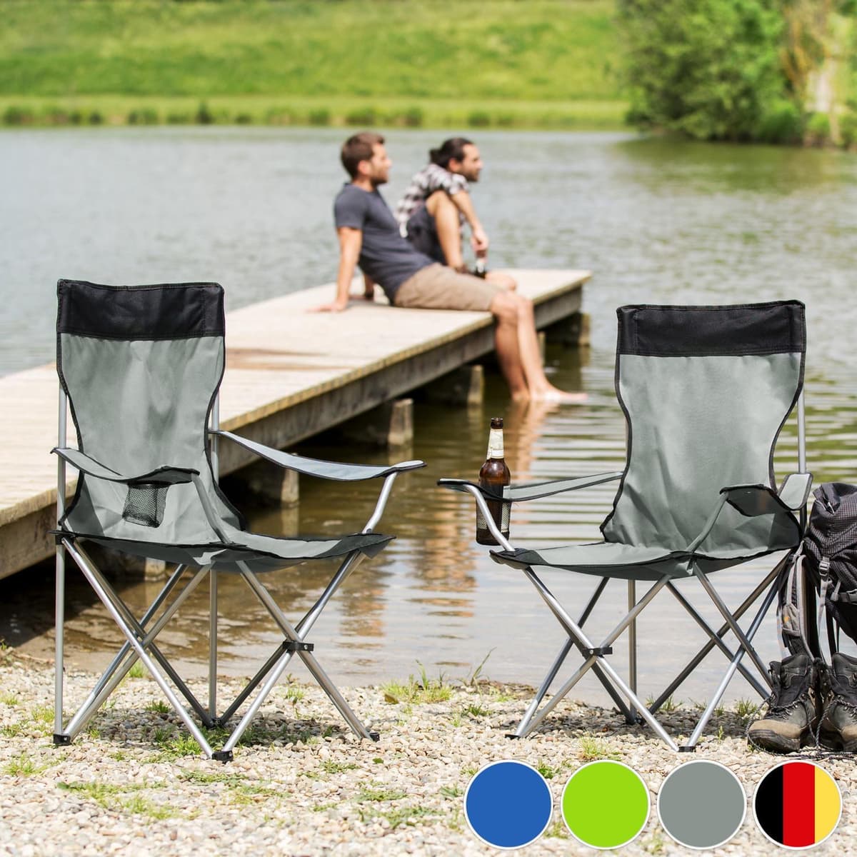 Tekniset tiedot • Kokonaismitat: (LxSxK) n. 95 x 83 x 50 cm • Taitettuna: (LxSxK) n. 95 x 14 x 14 cm • Istuinkorkeus: n. 44 cm • Istuinpinta: (LxS) n. 51 x 40 cm • • Ø Runko: n. 17 mm • Kantavuus: 120 kg • Paino: n. 2,2 kg • Materiaali: pulverimaalattu teräs, tekstiili 100 % polyesteriä • Muovijalusta . Toimitus • 2 retkeilytuolia • 2 pussia