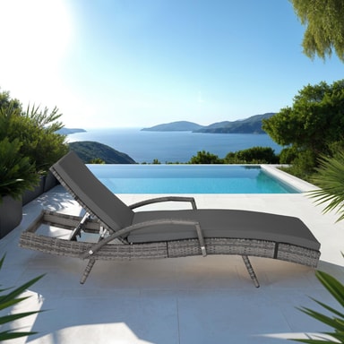 Tällä tectaken toiminnallisella rottinkiaurinkotuolilla olet hyvin valmistautunut lämpimiin kuukausiin. Tyylikäs ja moderni rakenne erottuu edukseen houkuttelevalla muotoilullaan ja poikkeuksellisella mukavuudellaan. Viiden säädettävän selkänojan asennon, pehmeän pehmusteen ja käytännöllisten käsinojien ansiosta löydät ihanteellisen asennon maksimaalista rentoutumista varten. Kestävä polyrottinkikudos ja vankka alumiinirunko tekevät tästä kevyestä ja ruostumattomasta sarjasta täydelliset ulkokalusteet. Tämä tectaken pehmeä aurinkotuoli säätyy täydellisesti juuri sinulle sopivaksi. Ihana lisä mihin tahansa puutarhaan kesällä.