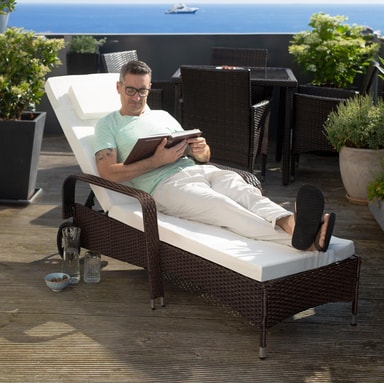 Rentoudu puutarhassa tai terassilla tämän tectaken aurinkotuolin avulla. Tyylikäs lepotuoli voi olla ehdoton katseenvangitsija parvekkeellesi, saunaan tai kylpytilaan. Hienostunut muotoilu tyylikkäine muotoineen ja innovatiivinen materiaaliyhdistelmä tekevät tästä aurinkotuolista myös visuaalisesti täydellisen. Aurinkotuolin selkänoja on säädettävissä tarpeidesi mukaan, ja kahden pyörän ansiosta sitä on helppo kuljettaa ja asettaa uudelleen. Tuolien vakaa metallirunko ja helppohoitoinen polyrottinki soveltuvat optimaalisesti sekä ulko- että sisäkäyttöön kotonasi. Hieno lisä tässä kalusteessa on mukava, irrotettava pehmustettu istuinosa ja erilliset tyynylisävarusteet. Nauti kesästä puutarhassasi tämän tectaken aurinkotuolin avulla.