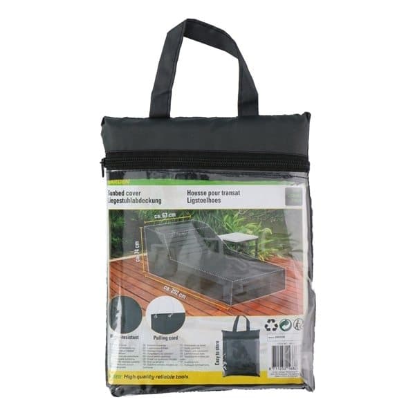 Haluatko nauttia aurinkotuolista kauemmin? Tämä Kinzo Gardenin aurinkotuolin suoja tarjoaa hyvän suojan aurinkotuolille esimerkiksi sateelta. Tämä musta suoja on vedenkestävä ja valmistettu muovipolyesteristä (PES 210D 75gsm). Kiristysnauha varmistaa, että suoja pysyy paikoillaan puutarhakalusteiden ympärillä. Ja kun et käytä suojaa, voit säilyttää sitä kätevästi mukana tulevassa vetoketjulla ja kahvalla varustetussa laukussa.