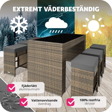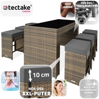 Tämän tyylikkään Tectaken polyrottinki-tankosarjan avulla voit tehdä puutarhastasi, parvekkeestasi, terassistasi, oleskelutilasta tai konservatoriostasi keskipisteen.Tutustu ominaisuuksiin