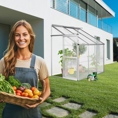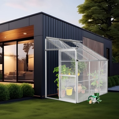 Tämä Tectaken vakaa, nojaava kasvihuone sopii täydellisesti talosi, puutarhan seinän tai vajan yhteyteen. Laadukas lean-to-kasvihuone on valmistettu vakaasta anodisoidusta alumiinista ja eristävistä ontelokammiolaseista.