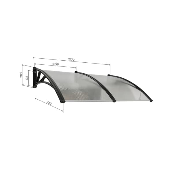 Vahvistettu CONOS Canopy Constructor ulko-oville on täydellinen sekoitus tyyliä ja suojaa. Se koristaa kotisi sisäänkäyntiä ja tarjoaa luotettavan suojan kuistille, ikkunalle tai parvekkeelle sateelta, lumelta ja auringolta ja luo samalla kodikkaan tunnelman kotiovellesi. CONOS-katoksen etuja ovat sen kevyt mutta tukeva muotoilu, helppo kokoaminen ja asennus sekä tyylikäs moderni ulkoasu.