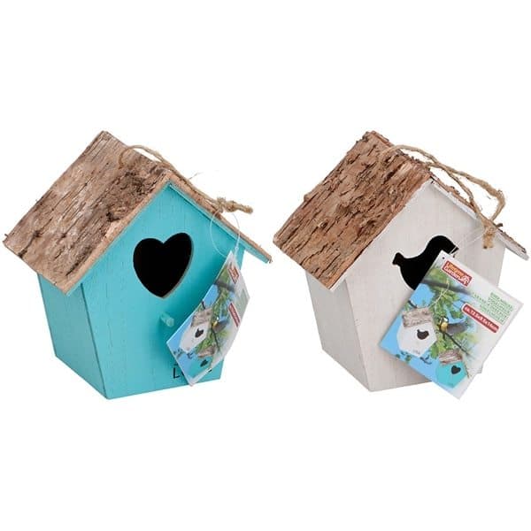Söpö linnunpönttö kaarnakatolla. Saatavana kahta eri vaihtoehtoa, jotka toimitetaan satunnaisesti: sininen pönttö sydämen muotoisella aukolla tai valkoinen pönttö linnun muotoisella aukolla. Materiaali: Puu Malli: Roikkuva Väri: Toimitetaan lajittelematta, valkoinen tai sininen. Mitat: 13,5 x 9,5 x 14 cm Paino: n. 0,198 kg