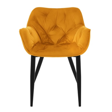 ML-Design ruokailutuolit 2 kpl sinapinkeltainen setti, Keittiötuoli paksulla samettiverhoillulla istuimella, metallijalat, Olohuoneen tuoli selkänojalla ja käsinojilla, Tikattu pehmustettu tuoli, ergonominen nojatuoli
