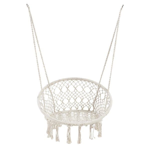 Ei ole mitään rentouttavampaa kuin antaa itsesi hitaasti keinua edestakaisin mukavassa riipputuolissa. Tässä kauniissa punottua puuvillaverkkoa olevassa riippunojatuolissa renotudut mukavasti milloin ja missä haluat. Ripusta se parvekkeelle, kuistille, puutarhaan puun varjoon. Mikset löydä sille paikkaa sisätiloissa, jossa voit nauttia siitä ympäri vuoden! Kun riippunojatuoli ei ole käytössä, se voidaan helposti ottaa alas, taittaa ja ottaa mukaan kaikkialle.