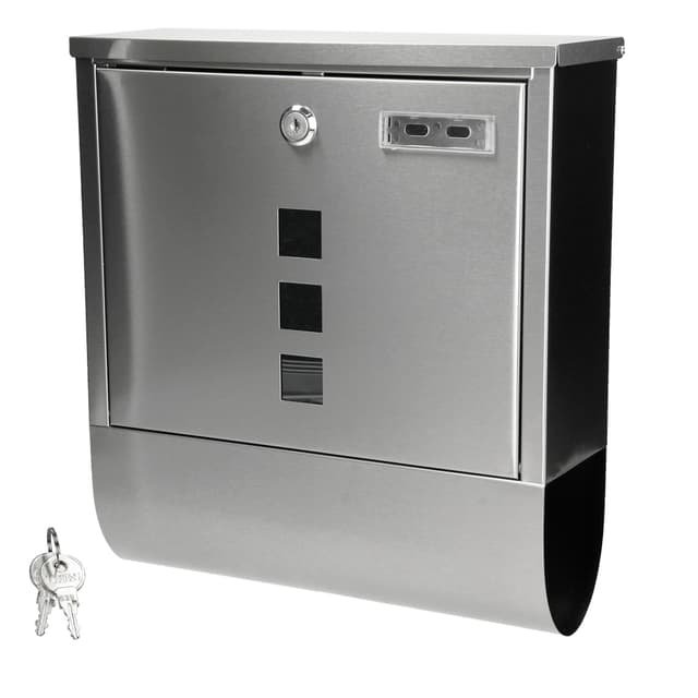 Toimituksen: Postilaatikko Ruostumaton teräs Kaksi avainta Kiinnitys materiaali Tekniset tiedot: Koko (PxLxK): 30,5 x 10 x 34 cm Materiaali: Ruostumaton teräs ylimääräisiä ruostesuojauksen pinnoite Tuotteen paino: 2 kg Heittää-aukossa