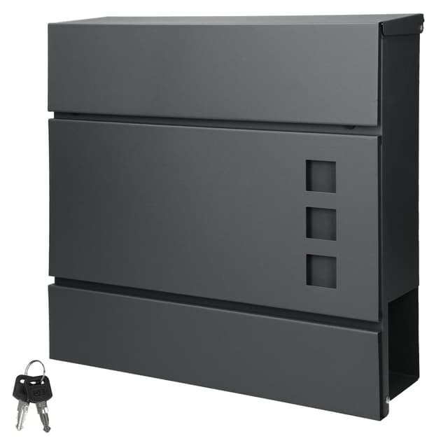 Toimituksen laajuus:1x jauhemaalattu teräksinen kirjelaatikko2x avainMukaan lukien kiinnitysmateriaaliTekniset tiedot:Koko (LxSxK): n. 37 x 10,5 x 36,5 cm.Materiaali: jauhemaalattu teräsVäri: antrasiittiSisäänheittoaukko (LxK): n.