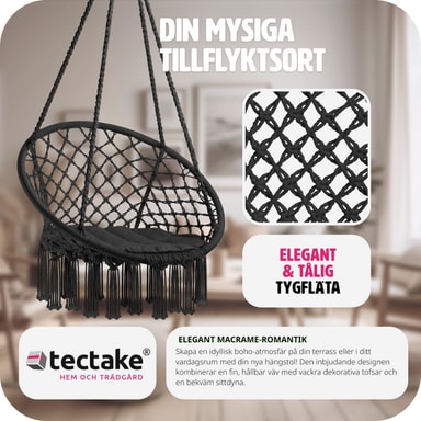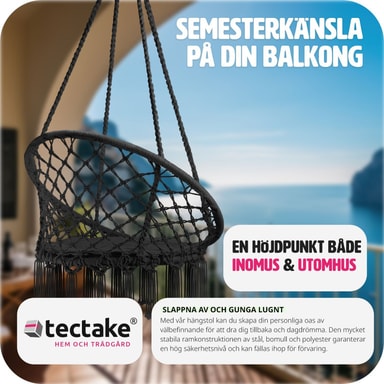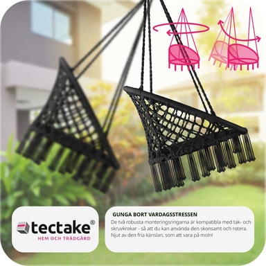Leiju korkealla arjen stressin yläpuolella tässä mukavassa tectaken riipputuolissa. Kevyt puuvillakangas ja pehmeä pehmuste mukautuvat täydellisesti kehoosi. Mukavuuden lisäksi tässä vankassa riipputuolissa, jonka alaosassa on koristeelliset tupsut, on tyyliä, joka tekee sinusta entistäkin rentoutuneemman. Keveytensä ansiosta voit ottaa tämän vankan riipputuolin mukaan lähes minne tahansa. Nauti jännittävästä kirjasta tai ihanasta lasillisesta punaviiniä keinuessasi luonnossa tässä viihtyisässä tectaken riipputuolissa.