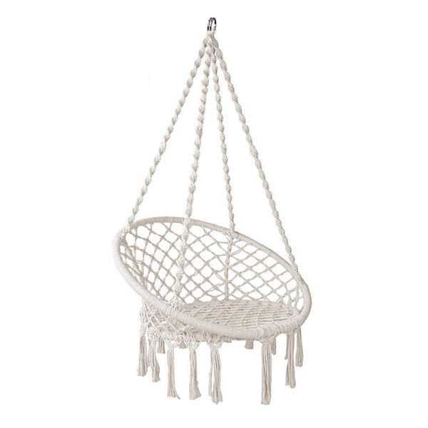 Ei ole mitään rentouttavampaa kuin antaa itsesi keinua hitaasti edestakaisin mukavassa roikkuvassa tuolissa. Tässä kauniissa punottua puuvillaverkkoa olevassa riipputuolissa on mukava rentoutua missä ja milloin haluat. Ripusta se parvekkeelle, kuistille, puutarhaan puun varjoon. Tai mikset etsisi sopivaa paikkaa sisältä ja voit nauttia siitä ympäri vuoden! Kun riipputuolia ei käytetä, se voidaan helposti ottaa alas, taittaa ja viedä mukana kaikkialle.