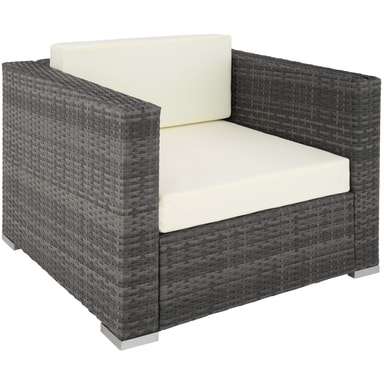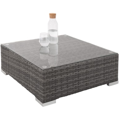 Tectake poly rottinki-puutarhakalusteiden lounge-sarjaa voidaan käyttää monipuolisesti ulkona tai sisätiloissa, ja se parantaa visuaalisesti puutarhaa, terassia, konservatoriota tai olohuonetta. Tyylikäs pöytä ja mukavat tuolit lupaavat rentouttavia tunteja. Rottinki-puutarhasetti tekee vaikutuksen paitsi tyylikkäällä ulkonäöllään myös pitkällä käyttöiällään. Alhaisen painon ansiosta huonekaluja on helppo kuljettaa. Lasista valmistettu pöytälevy on erittäin tyylikäs ja helppo puhdistaa. Erittäin mukavat, polyesteristä valmistetut istuintyynyt on sovitettu väriltään täydellisesti rottinkipuutarhasetin kanssa, ja niiden selkäpuolella on vetoketju, joka mahdollistaa helpon puhdistuksen. Pehmusteiden suojaamiseksi vedeltä pinta on kyllästetty. Näin lika- ja vesipisarat yksinkertaisesti vierivät pois. Erilaisten yksittäisten elementtien avulla puutarhasetti voidaan järjestää toiveidesi mukaan. Hanki tämä rottinkipuutarhakalustesarja Tectakelta ja rentoudu ulkotilassasi.